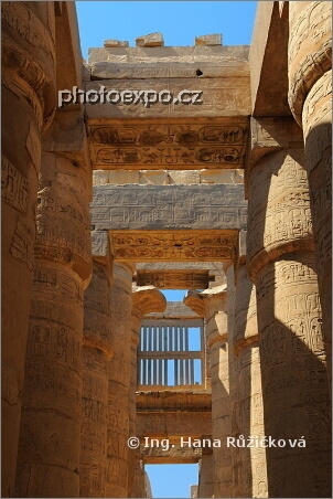 Fascinující sloupy plné reliéfů ve Velké sloupové síni Amonova chrámu v Karnaku. Ipet-Isut aneb Karnacký chrámový komplex je zřejmě nejrozsáhlejším chrámovým komplexem, jaký kdy byl vybudován. Po etapách jej stavělo mnoho faraonů celých 1500 let! Jeho srdcem byl právě Amonův chrám s Velkou sloupovou síní aneb Velkým hypostylem se 134 obřími sloupy pokrytými bezpočtem reliéfů a rytin zobrazujících bohy, faraony, symboly... A já byla malinká, malinká... Karnak, Egypt.