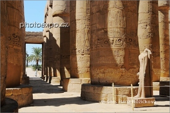 Fascinující sloupy plné reliéfů ve Velké sloupové síni Amonova chrámu v Karnaku. Ipet-Isut aneb Karnacký chrámový komplex je zřejmě nejrozsáhlejším chrámovým komplexem, jaký kdy byl vybudován. Po etapách jej stavělo mnoho faraonů celých 1500 let! Jeho srdcem byl právě Amonův chrám s Velkou sloupovou síní aneb Velkým hypostylem se 134 obřími sloupy pokrytými bezpočtem reliéfů a rytin zobrazujících bohy, faraony, symboly... A já byla malinká, malinká... Karnak, Egypt.
