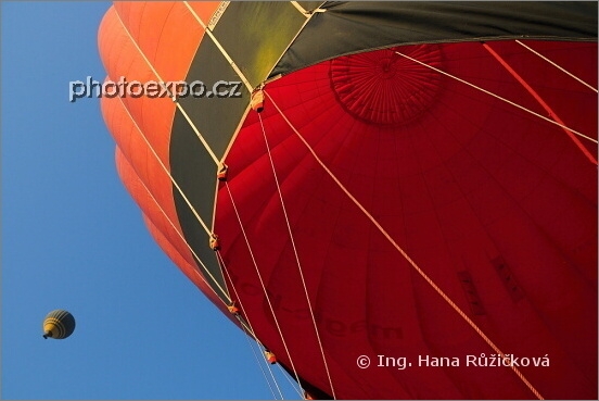 Právě jsme přistáli na jakémsi poli a v koši našeho balonu čekáme, kdo si nás a zda vůbec vyzvedne. Nad námi se vznáší ještě jiný balon... Oblast Luxoru, Egypt.