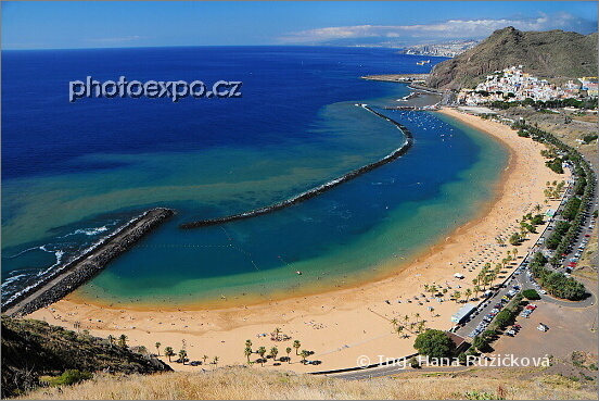 Nádherná turistická pláž Teresitas. Zdánlivě "obyčejná" pláž, pro Tenerife však netradičně ve standardní barvě písku. Na Tenerife jsou totiž téměř všechny pláže díky vulkanickému původu ostrova tmavé. Tenerife