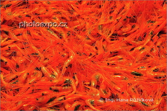 Detail krevetí nabídky z rybí tržnice v komplexu Mercado de Nuestra Seňora de África v Santa Cruz de Tenerife. Tenerife