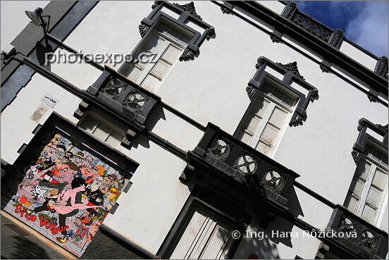 Vtipná malba na roletě historického domu ve městě San Cristóbal de la Laguna na náměstí de la Conceptción. Tenerife