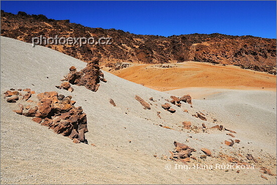 Písečné duny lemované lávou u vyhlídky Mirador de San José v Národním parku Teide. Tenerife