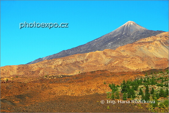 Výhledy na Pico del Teide v podvečerním slunci od Montaňa Samára. Národní park Pico del Teide. Tenerife