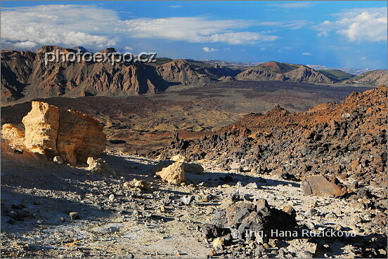 Lávová krajina v Parque Nacional del Teide. Právě jsme vyrazili cestou č. 12 kolem vrcholu Pico del Teide vlevo směr Pico Viejo. Tenerife