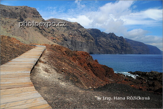 Ostrov Tenerife je vlastně celý z lávy, tedy ztuhlá láva je všudypřítomná... Tak tomu je i na Punta del Teno, nejsevero-východnějším cípu ostrova. V dáli můžeme obdivovat obrovské skály. A pohybovat zde se můžeme i díky dřevěným cestičkám.Tenerife