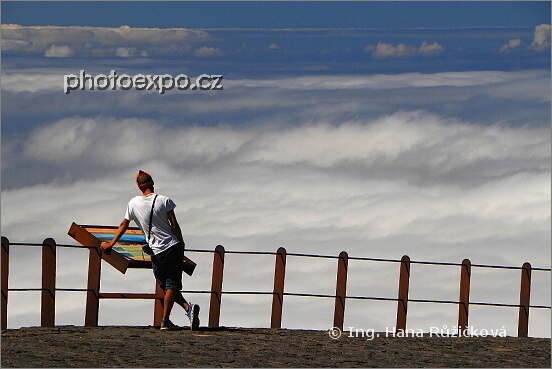 V nebi nad mraky... Na ostrově Tenerife je pás oblaků velmi nízko a tak není problém se při cestování dostat "do nebe". Zde jsme právě na vyhlídce na hřebenové silnici TF24 mezi Národním parkem Teide a městečkem La Esperanza. Tenerife