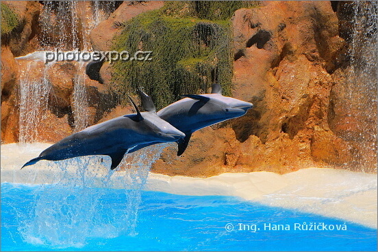 Delfíní show v Loro Parque v městečku Puerto de la Cruz. Tenerife