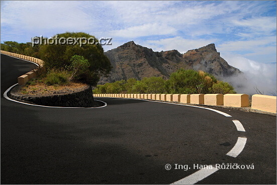 Silnička vlnící se velmi členitým terénem v oblasti vesničky Masca. Tenerife