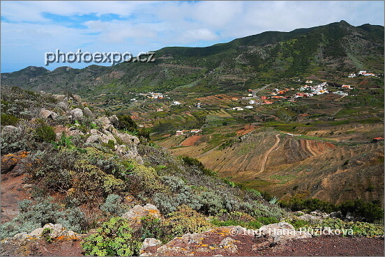 Vyhlídka do hornaté krajiny lávového Tenerife mezi vesničkami Masca a Buenavista del Nort. Tenerife