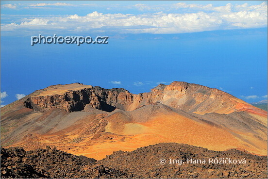 Ještě relativně nedávno aktivní sopka Pico Viejo v Parque Nacional del Teide pohledem z vrcholové stezky kolem Pico del Teide. TEnerife
