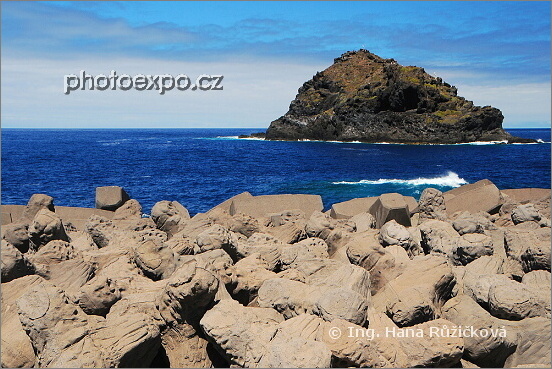 Výhled na ostrov u městečka Garachico. Pobřeží chrání mohutné vlnolamy. Tenerife