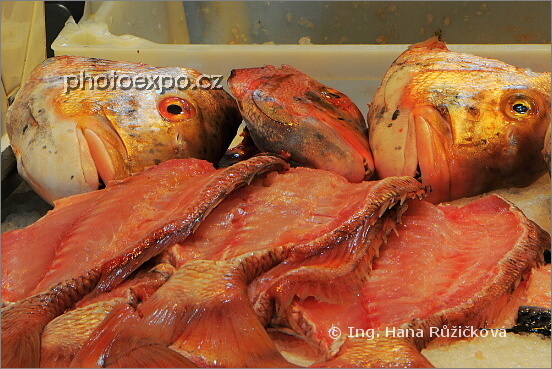 Je libo koupit torzo mrtvé rybičky? ... já vegetarián se holt nezapřu ;=) Oddělení rybí tržnice v tržnici Mercado de Nuestra Seňora de África. Santa Cruz de Tenerife. Tenerife