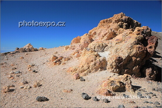 Zajímavě barevný útvar pod vrcholem Pico del Teide v Národním parku Teide. Tenerife