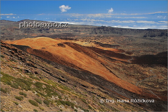 Fascinující lávové splazy pohledem z lanovky sjíždějící z Pico del Teide, sopky a nejvyšší hory Španělska. Parque Nacional del Teide. Tenerife