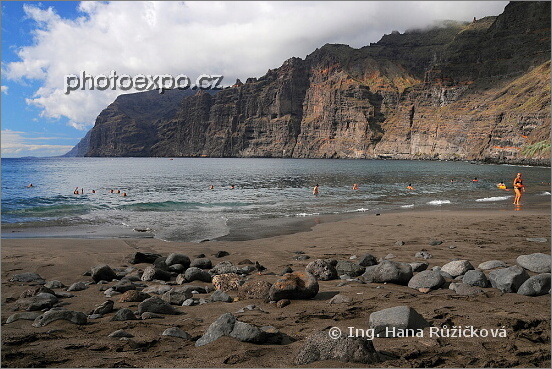 Pláž Los Guios a výhled na skály Los Gigantes na ostrově Tenerife.
