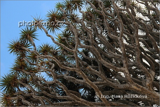 Větve dračince, dračího stromu, v Icod de los Vinos. Tento strom je jakýmsi symbolem ostrova Tenerife.