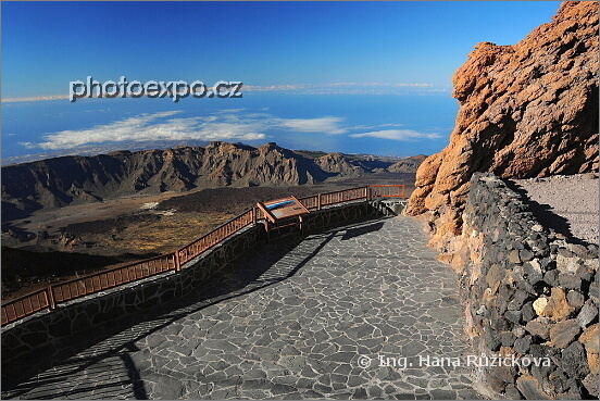 Výhled z lanovky přijíždějící k vrcholu Pico del Teide na západní stranu. Parque Nacional del Teide. Tenerife