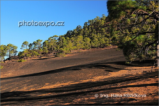 Piniové borovice na lávě v Národním parku Teide. Tenerife