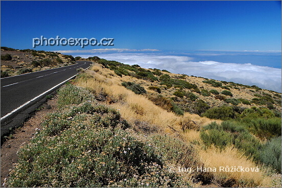 Cestou nad oblaky po hřebenové silnici TF24 v Parque Nacional del Teide. Tenerife