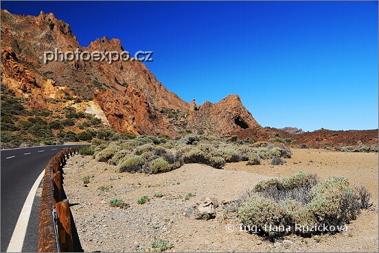 Krajina kolem vyhlídky za Boca Tauce na silnici TF21 v Parque Nacional del Teide. Tenerife