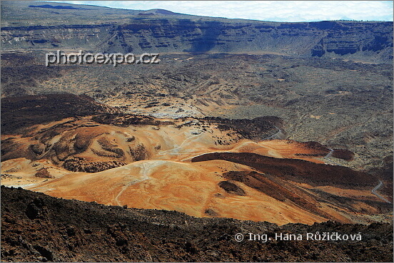 Lávové splazy a krajina v okolí sopky Pico del Teide. Parque Nacional del Teide. Tenerife