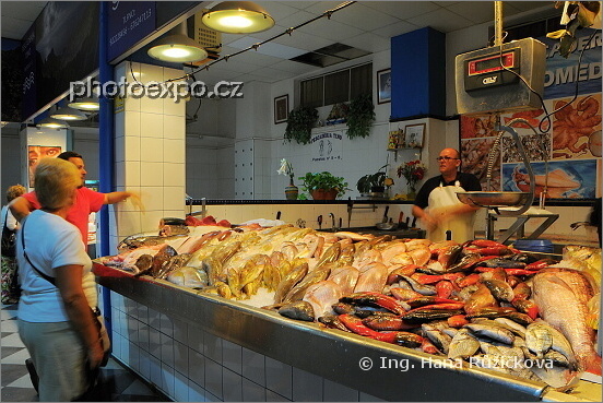 Oddělení rybí tržnice v Mercado de Nuestra Seňora de África. Santa Cruz de Tenerife. Tenerife