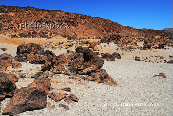 Písek a láva v okolí vyhlídky Mirador de San José. Parque Nacional del Teide. Tenerife
