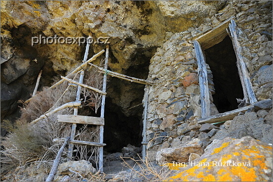 Skalní obydlí nad vesničkou Chamorga. Tenerife