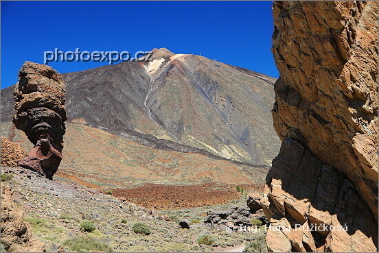 Zajímavé geologické útvary Roques de García - zkroucené lávové věžičky - na pozadí sopky Pico del Teide (3 718 m n.m.) v Národním parku Teide. Vlevo vzadu je snad nebizardnější útvar Roque Cinchado, Prst. Tenerife