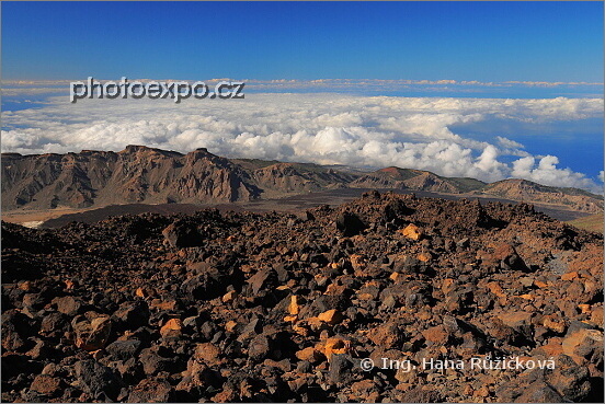 Prvně mraky a pak až nad nimi láva, láva, láva. Parque Nacional del Teide. Tenerife