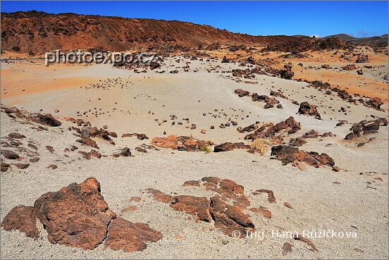 Duny a lávové kameny u Mirador de San José. Parque Nacional del Teide. Tenerife