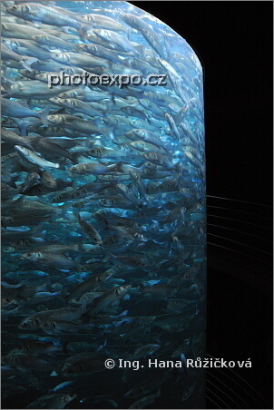 Skleněný válec plný ryb... alespoň pro mne fascinující podívaná v Planet Penguin aneb pavilonu tučňáků, papuchalků a ryb v Loro Parque. Puerto de la Cruz. Tenerife