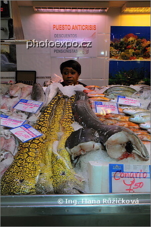 Oddělení rybí tržnice v Mercado de Nuestra Seňora de África. Santa Cruz de Tenerife. Tenerife